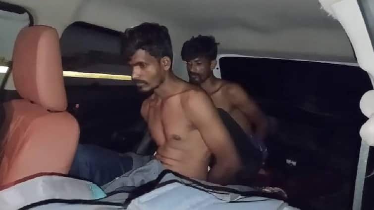 காவலர் மீது காரை ஏற்றிச் சென்ற கடத்தல்காரர்கள் தப்பிஓட முயன்றனர். இருப்பினும் காவல் துறையினர் விடாமல் துரத்தி, அவர்களை பிடிக்க முயன்றனர். அப்போது 3 பேர் தப்பி ஓடிய நிலையில் 2 பேர் கைது செய்யப்பட்டுள்ளனர். பிடிப்பட்ட காரில் இருந்து 7 செம்மரக் கட்டைகள் பறிமுதல் செய்தனர். மேலும் தப்பி ஓடிய 3 பேரை காவல் துறையினர் தேடி வருகின்றனர்.