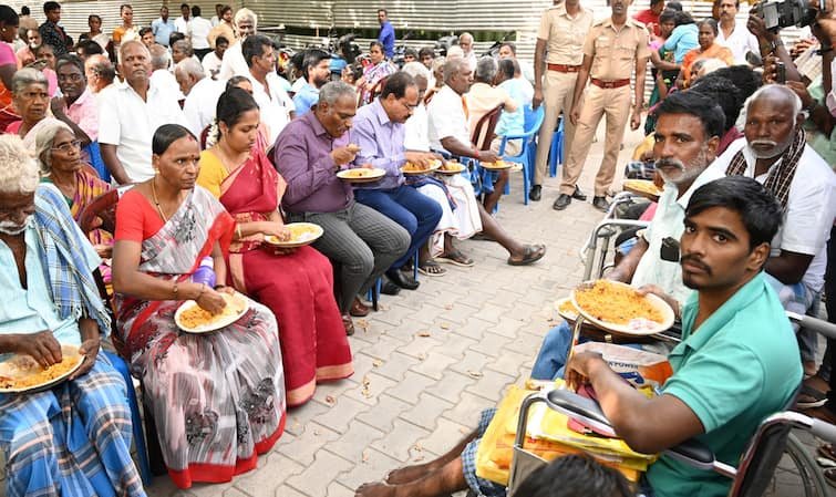மாற்றுத்திறனாளிகளுடன் அமர்ந்து சாப்பிட மாவட்ட ஆட்சியர்