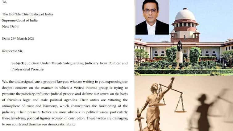 மூத்த வழக்கறிஞர் ஹரிஷ் சால்வே மற்றும் இந்திய பார் கவுன்சில் தலைவர் மனன் குமார் மிஷ்ரா உள்ளிட்ட நாட்டின் பல்வேறு பகுதிகளைச் சேர்ந்த, 600-க்கும் மேற்பட்ட வழக்கறிஞர்கள் சேர்ந்து உச்சநீதிமன்ற தலைமை நீதிபதிக்கு கடிதம் எழுதியுள்ளனர். அதில், நீதித்துறையின் நேர்மைக்கு அச்சுறுத்தலாக நிலவுவதாக கவலை தெரிவித்துள்ளனர்.