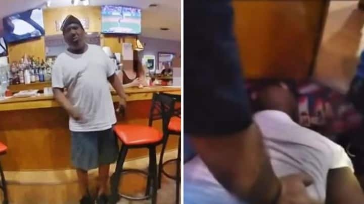 மதுபான விடுதியில் கறுப்பினத்தவர் ஒருவரை தரையில் தள்ளி, அவருக்கு கைவிலங்கு போட்டுள்ளனர். அதோடு நிற்காமல் தங்களின் கால்களால் அவரின் கழுத்தை காவல்துறை அதிகாரிகள் நெரித்துள்ளனர். தன்னால் மூச்சு விட முடியவில்லை என அந்த இளைஞர் கதறியுள்ளார். இறுதியில், அவர் துடிதுடிக்க இறந்துள்ளார்.