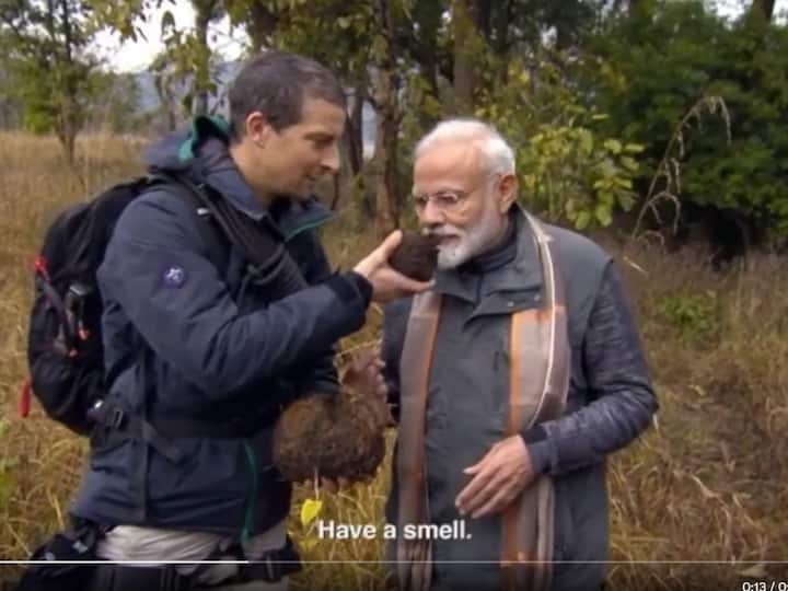 அந்த வீடியோவில், “பார்த்தீர்களா தற்போது தான் யானை ஒன்று கடந்து போனது என பியர் கிரில்ஸ் கேட்க, ஆமாம் என மோடி பதிலளிக்கிறார். உடனே, கீழே இருந்த காய்ந்த யானை சாணத்தை கையில் எடுக்கும் பியர் கிரில்ஸ் இதை நுகர்ந்து பாருங்கள் என மோடியிடம் கொண்டு செல்கிறார். அதை நுகர்ந்ததும் தற்போது உரமாகிவிட்டது அல்லவா என மோடி கேட்க, ஆமாம் அதோடு தற்போது இதை எரித்து கொசுக்களையும் விரட்டலாம் என பியர் கிரில்ஸ் கூறுகிறார். மேலும், எப்போது யானையின் சாணம் புதியதாக இருக்கிறதோ அதாவது யானை சாணம் போட்ட உடனேயே பார்த்தால் அது மிகவும் ஈரமாக இருக்கும். அப்படி தான் நான் ஒருமுறை ஆப்ரிக்காவில் இருந்தபோது அந்த சாணத்தை பிழிந்து அதில் இருந்து கிடைத்த சாறை குடித்தேன். அது நோய் நுண்மங்கள் ஒழிக்கப்பெற்ற சுத்தமான சாறு என பியர் கிரில்ஸ் விளக்கமளித்துள்ளார். இதை கேட்டதும் பிரதமர் மோடி மிகவும் ஆச்சரியத்துடன் கேட்டு வாய்விட்டு சிரித்துள்ளார்”. அப்போது, 2007ம் ஆண்டு பியர் கிரில்ஸ் யானை சாணத்தை பிழிந்து அதிலிருந்து வரும் சாற்றை பருகும் காட்சிகளும் அந்த வீடியோவில் இடம்பெற்றுள்ளது.