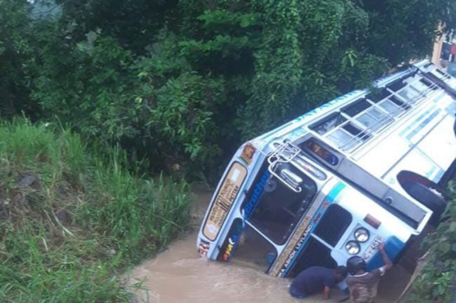 இலங்கையின் வராகபோலாவில் 7 பெற்றோர், குழந்தைகளுடன் பேருந்தில் சென்று கொண்டிருந்தனர். அப்போது, கட்டுப்பாட்டை இழந்த பேருந்து, திடீரென சாலையோரம் இருந்த கால்வாயில் கவிழ்ந்தது.