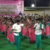 <p style="text-align: justify;"><strong>சின்னதாராபுரம் அருகே கொங்கு நாடு கலைக்குழுவினரின் வள்ளி கும்மி அரங்கேற்ற விழா நடைபெற்றது. 150-க்கும் மேற்பட்டோர் ஒரே வண்ண உடையில் வள்ளி கும்மியாட்டம் ஆடி…