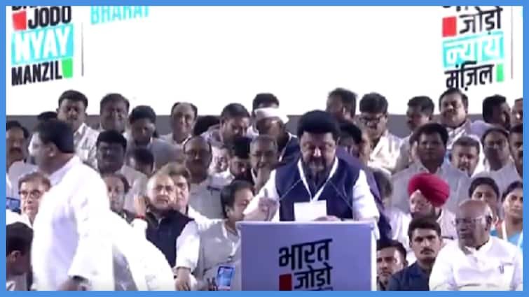 இந்திய கூட்டணி பொதுக்கூட்டத்தில் தமிழ்நாடு முதலமைச்சர் ஸ்டாலின் பேசுகையில், ராகுல் காந்தியின் இந்திய ஒற்றுமை மற்றும் நீதிக்கான பயணத்தை நிறைவு செய்த ராகுல் காந்திக்கு வாழ்த்துகள். மக்களவை எம்.பி பதவியில் இருந்து தகுதி நீக்கம் செய்யப்பட்டாலும், உச்சநீதிமன்றம் வரை சென்று வென்றார் ராகுல் காந்தி.