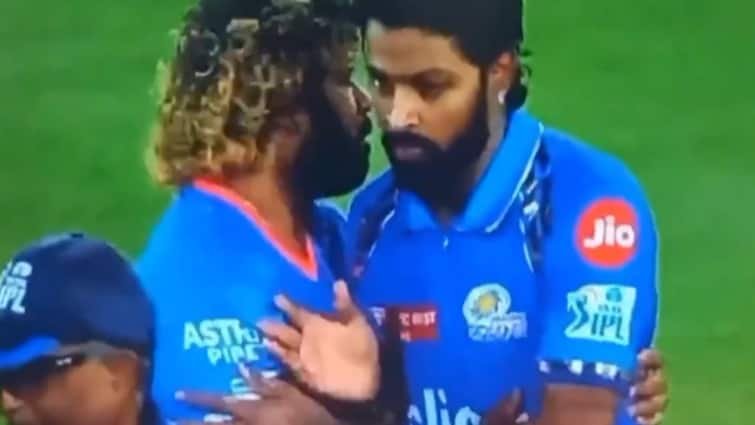 மும்பை அணியின் பந்துவீச்சு பயிற்சியாளர் லசித் மலிங்கா ஹர்திக் பாண்டியாவுடன் கைகுலுக்கி, கட்டிப்பிடிக்க வந்தார். அப்போது ஹர்திக் பாண்டியா, லசித் மலிங்காவுடன் கைகுலுக்கிய பிறகு, அவரை இடதுபுறம் தள்ளுவதை காணலாம். இதன்பிறகு, லசித் மலிங்காவின் முகம் மிகவும் மோசமாக மாறியது.