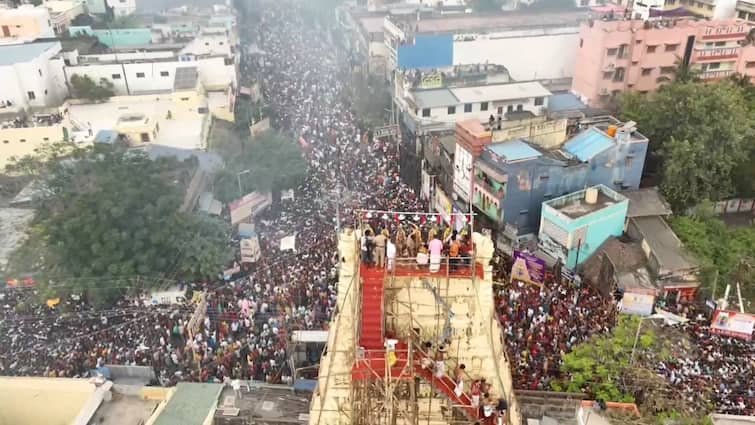 கும்பாபிஷேக விழாவில் சிறு, குறு தொழில் துறை அமைச்சர் அன்பரசன், ஆந்திர மாநில அமைச்சர் நடிகை ரோஜா, மாவட்ட ஆட்சியர் கலைச்செல்வி மற்றும் பல்வேறு முக்கிய பிரமுகர்கள், அரசு அலுவலர்கள் கலந்து கொள்ள பல்லாயிரக்கணக்கான பொதுமக்கள் முன்னிலையில், சிவாச்சாரியார்கள் மந்திரங்கள் ஓத கோபுர கலசங்களில் புனித நீர் தெளிக்கப்பட்டு கும்பாபிஷேக விழா நடைபெற்றது.