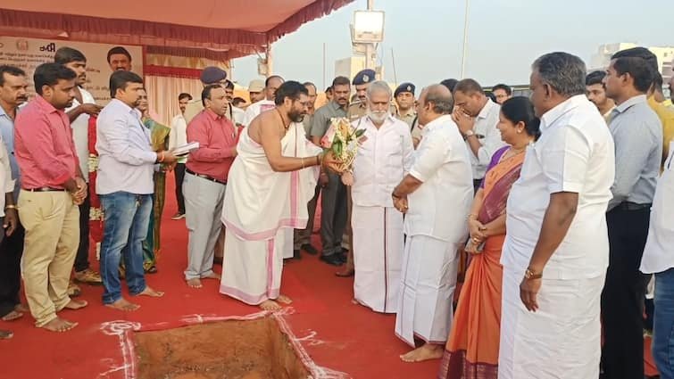 கிளாம்பாக்கம் கலைஞர் நூற்றாண்டு பேருந்து நிலையத்தில் ரூ.14.30 கோடி மதிப்பீட்டில் அமைய உள்ள, புதிய காவல் நிலையம் கட்டுமான பணிகளுக்கு அமைச்சர்கள் தா.மோ. அன்பரசன் மற்றும் பி .கே சேகர்பாபு ஆகியோர் அடிக்கல் நாட்டில் பணிகளை தொடக்கி வைத்தனர்