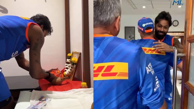 மும்பை இந்தியன்ஸ் அணியின் புதிய கேப்டன் ஹர்திக் பாண்டியா, இரண்டு ஆண்டுகளுக்குப் பிறகு மீண்டும் மும்பை அணிக்கு திரும்பினார். திரும்பிய கையோடு அங்கிருந்த கடவுளின் படத்திற்கு மாலையிட்டு தேங்காய் உடைத்து அர்ச்சனை செய்தார். தற்போது, இந்த வீடியோ சமூக வலைதளங்களில் வைரலாகி வருகிறது.