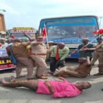 திருவண்ணாமலை அரசு போக்குவரத்து கழகம் ஊழியர்கள் பேருந்தை முற்றுகையிட்டு 2வது நாளாக போராட்டம்