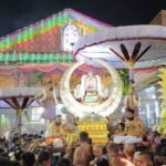 Kanchipuram Kamatchi Amman Temple celebration of Masi month Brahmotsavam Kamakshi Amman strolled down Thiruveedi in a silver Chandra Prabhai vehicle