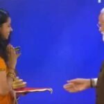 Women touches PM Modi feet what he reacts National Creators Award 2024 Viral Video