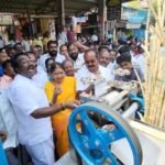 குளு குளு கரும்பு ஜூஸ்…! ஜூஸ் போட்டு கொடுத்த முன்னாள் அமைச்சர் வளர்மதி..!