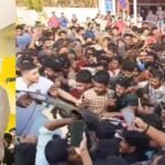 actor Vijay arrives Kerala for the GOAT movie shooting Vijay fans go frenzy at trivandrum airport