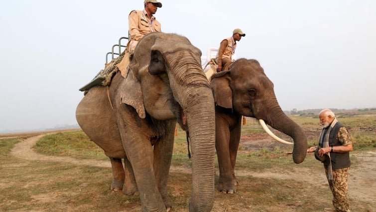 பிரதமர் நரேந்திர மோடி அசாம் மாநிலத்தில் உள்ள காசிரங்கா தேசிய பூங்காவிற்குச் சென்று, அங்கு உள்ள யானைகளுக்கு கரும்புகள் அளித்து மகிழ்ந்தார்.