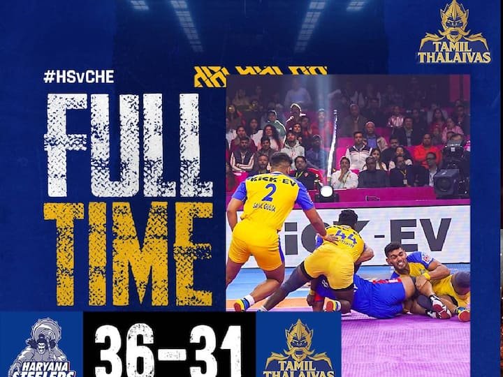 Final whistle, a difficult defeat. Thalaivas showed grit, and we stand by them in success and challenges. Moving ahead, Thalaiva family.#IdhuNammaTeam | #GiveItAllMachi | #TamilThalaivas | #ProKabaddi | #PKLSeason10 | #HSvCHE pic.twitter.com/SHp2M0dJAm