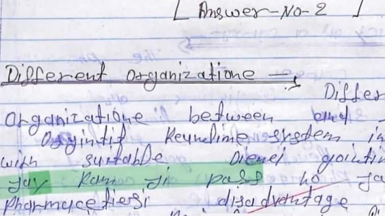 உத்தரபிரதேச மாநிலம் ஜான்பூரில் அரசு நடத்தும் வீர் பகதூர் சிங் பூர்வாஞ்சல் பல்கலைக்கழகம் அமைந்துள்ளது. அந்த பல்கலைக்கழகத்தின் தேர்வில், முதலாம் ஆண்டு மாணவர்கள் ‘ஜெய் ஸ்ரீராம்’ மற்றும் கிரிக்கெட் வீரர்களின் பெயர்களை விடைத்தாளில் எழுதியுள்ளனர். அதை திருத்திய ஆசிரியர்கள் அந்த மாணவர்களுக்கு பாஸ் மார்க்கும் போட்டுள்ளனர். அதோடு, பாடல்கள், இசை வரிகள் மற்றும் மத வாசகங்களுடன் எழுதப்பட்ட விடைத்தாள்களுக்கும் தேர்ச்சி மதிப்பெண்கள் வழங்கப்பட்டுள்ளன. இந்த விவகாரம் அம்பலமான நிலையில், பணம் பெற்றுக்கொண்டு மாணவர்களுக்கு தேர்ச்சி மதிப்பெண்கள் வழங்கியதாக இரண்டு பேராசிரியர்கள் பணி இடைநீக்கம் செய்யப்பட்டுள்ளனர். இணையத்தில் வைரலாகும் விடைத்தாளில், “பார்மசி ஒரு தொழில்’ என்ற பதிலின் நடுவில் ஜெய் ஸ்ரீ ராம் என எழுதப்பட்டுள்ளது. மேலும் ஹர்திக் பாண்ட்யா, விராட் கோலி மற்றும் ரோஹித் சர்மா போன்ற கிரிக்கெட் வீரர்களின் பெயர்களும் குறிப்பிடப்பட்டுள்ளன.